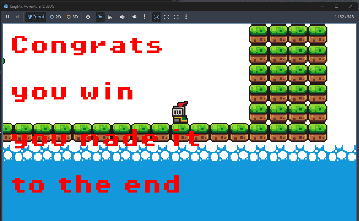 The goal of Knight’s Adventure was to build a solid foundation in 2D gameplay programming by implementing core platformer mechanics from scratch. This project focused on understanding player movement, jumping physics, collision detection, coin collection systems, and level completion logic while working within a simple, readable code structure. + enemies and death animation The intent was not to create a large or complex game, but to gain confidence in fundamental systems that form the backbone of more advanced game projects.